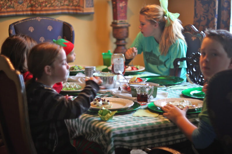 I was missing my cousins and I love to throw a party so here are a few snapshots of the St. Patrick's Day breakfast feast and movie morning we had yesterday!